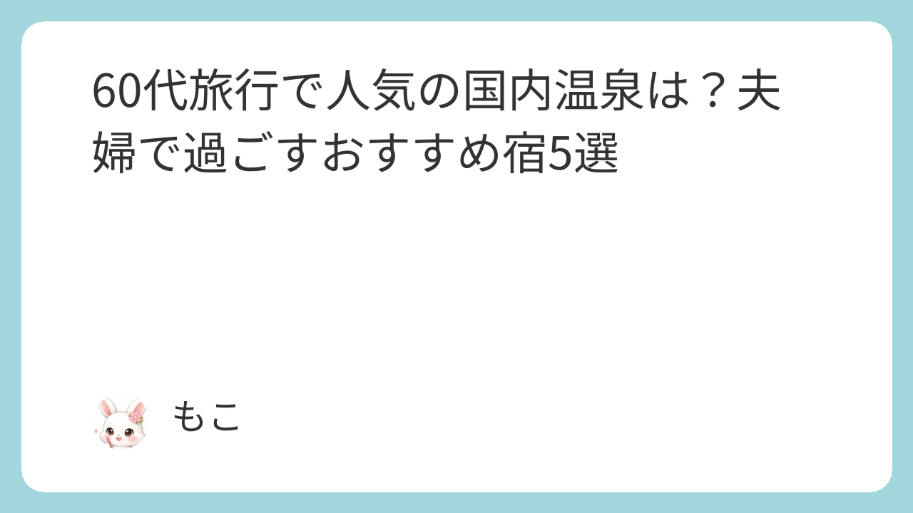 この記事では、60代夫婦に人気の国内温泉地と、安心して過ごせるおすすめ宿を厳選してご紹介します。無理なく、心からリラックスできる旅を見つけてみてください。