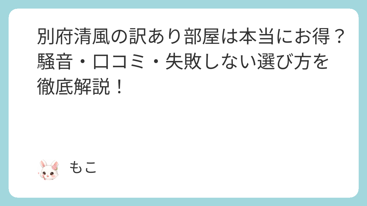 「別府清風の訳あり部屋って実際どうなの?」「安いけど、うるさいって本当?」と気になっていませんか?この記事では、公式情報と実際の口コミをもとに、訳あり部屋のリアルな実態をわかりやすく解説します。安さの理由やメリット・デメリット、さらに失敗しない選び方まで詳しく紹介しているので、予約前にぜひチェックしてみてください。