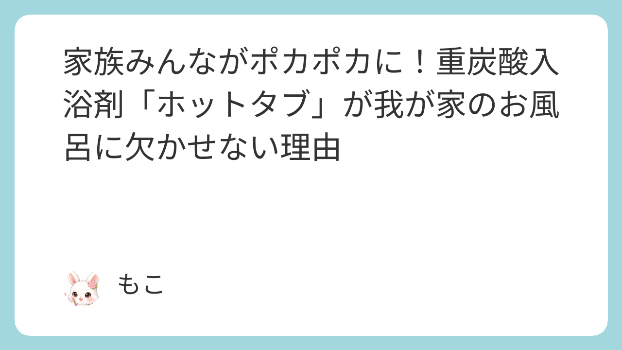 ホットタブは1〜2錠に調整して使えば、1回あたりのコストをかなり抑えられます。体の芯からしっかり温まれて、家族全員で使えて、風邪をひきにくくなるかもしれないという効果を考えると、<strong>入浴剤代としてはむしろコスパが良い</strong>と実感しています。