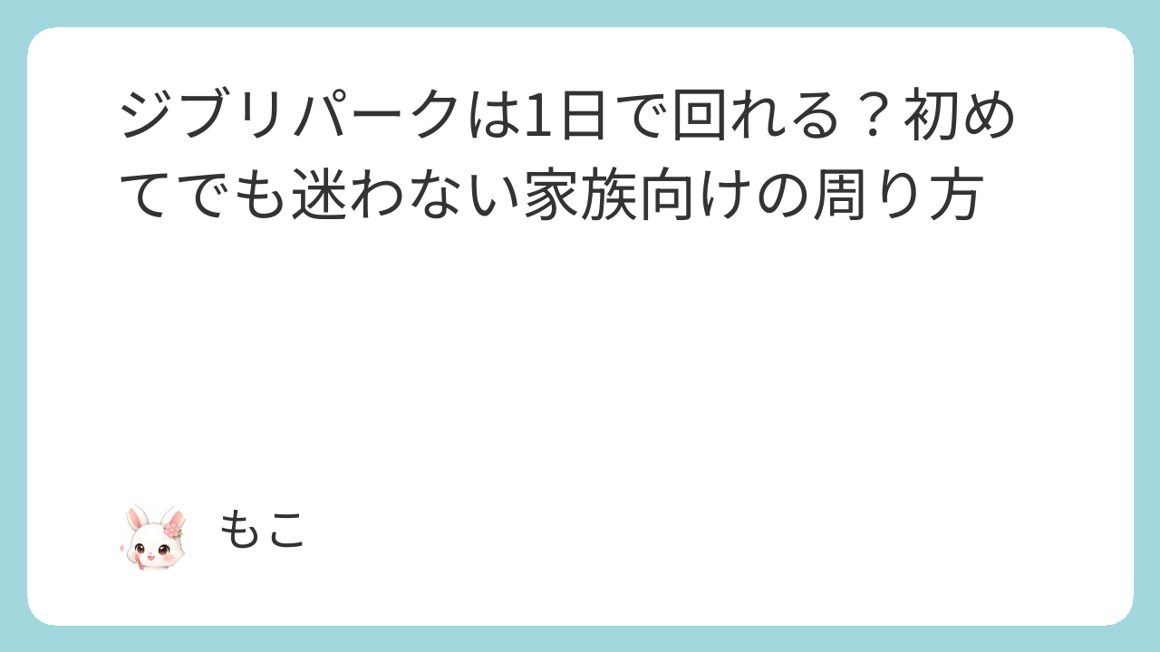 ジブリパークに行くなら、「1日で全部回れるの?」と気になりますよね。特に初めてだと、どれくらい時間がかかるのか想像しにくいものです。