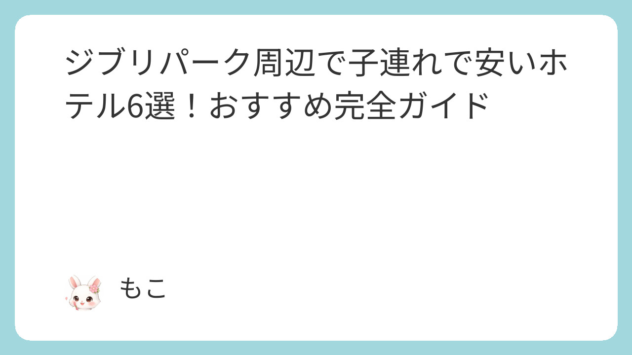 ジブリパーク旅行では、「安さ」だけでなく「アクセス」「設備」「子連れ対応」のバランスが重要です。特に今回紹介したホテルは、コスパが良く家族旅行でも安心して利用できる場所ばかりです。しっかり比較して、自分に合ったホテルが見つかりますように。