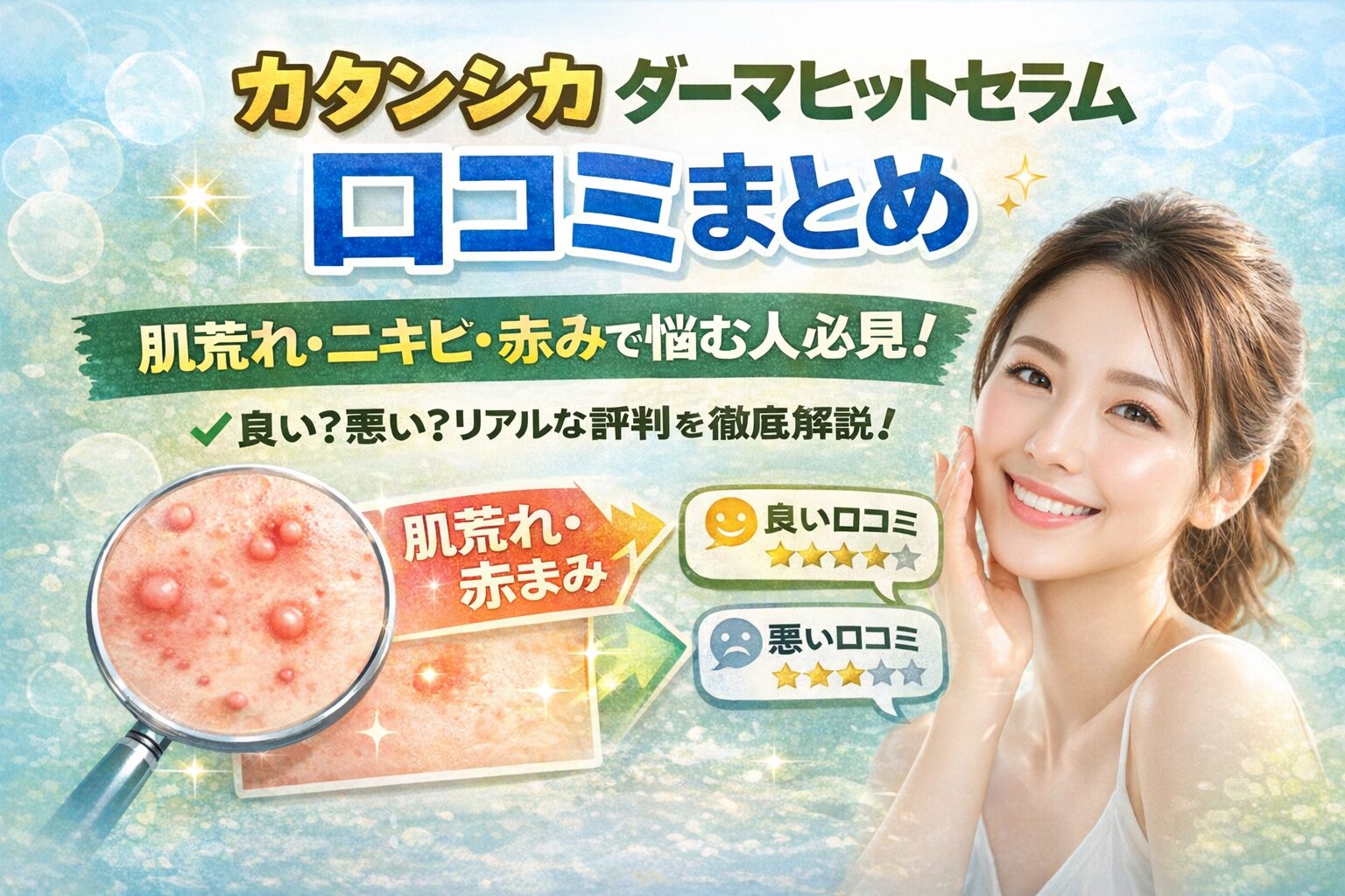 肌荒れやニキビ、赤みなどのトラブルに悩んでいる方に注目されているカタン シカ(KATAN CICA) ダーマヒットセラムの口コミをまとめました!