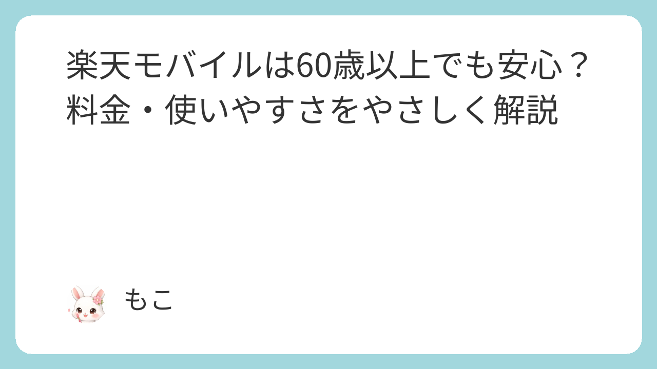 楽天モバイルは、60歳以上の方でも十分に使えるシンプルで分かりやすいサービスです。特に「Rakuten最強プラン」は、使った分だけ料金が決まる仕組みで、無駄なくスマホを使いたい人に向いています。