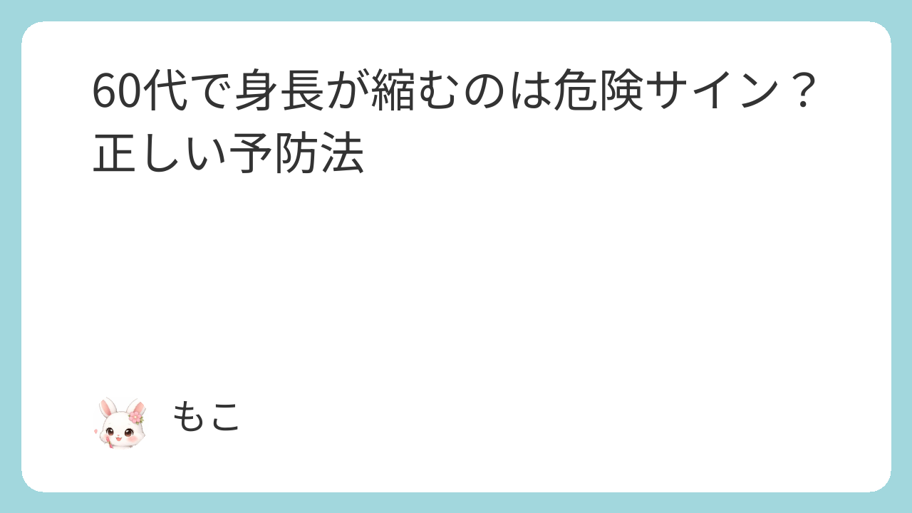 身長の変化は、体の状態を知る大切なサインのひとつです。「年だから仕方ない」と放置するのではなく、自分の体の変化に気づき、適切に対処することが健康を守ることにつながります。定期的に身長を測る習慣をつけるのもおすすめです。